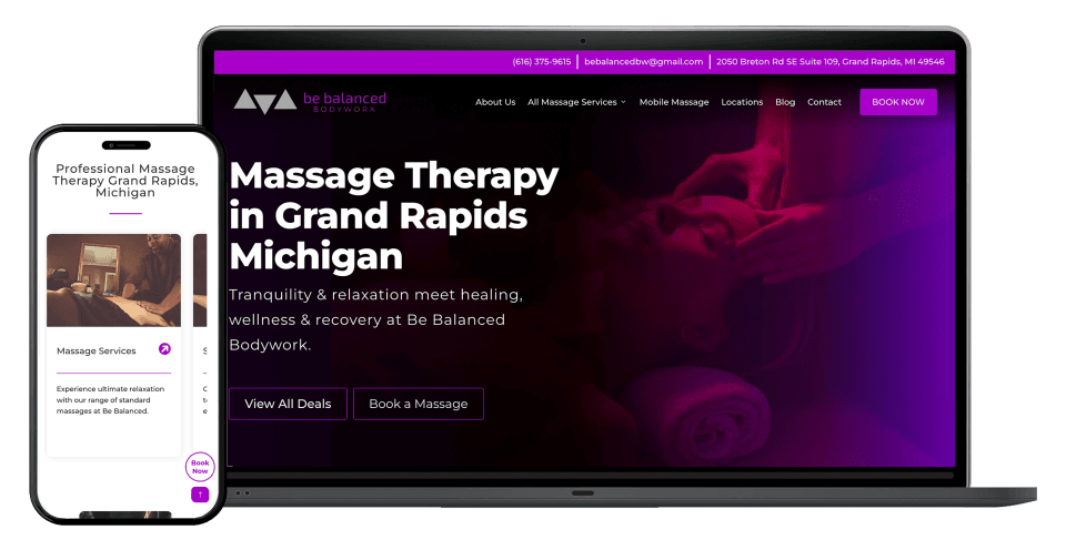 Before working with Good Rep Media, Be Balanced Bodywork struggled with an inconsistent brand and a limited online presence, making it difficult for potential clients to discover their massage and bodywork therapy services and understand the full value of what they offer. The website lacked clear navigation, engaging content, and a structure that guided users toward booking, so visitors often left without taking action, which ultimately limited growth and reduced opportunities to attract and convert new clients.